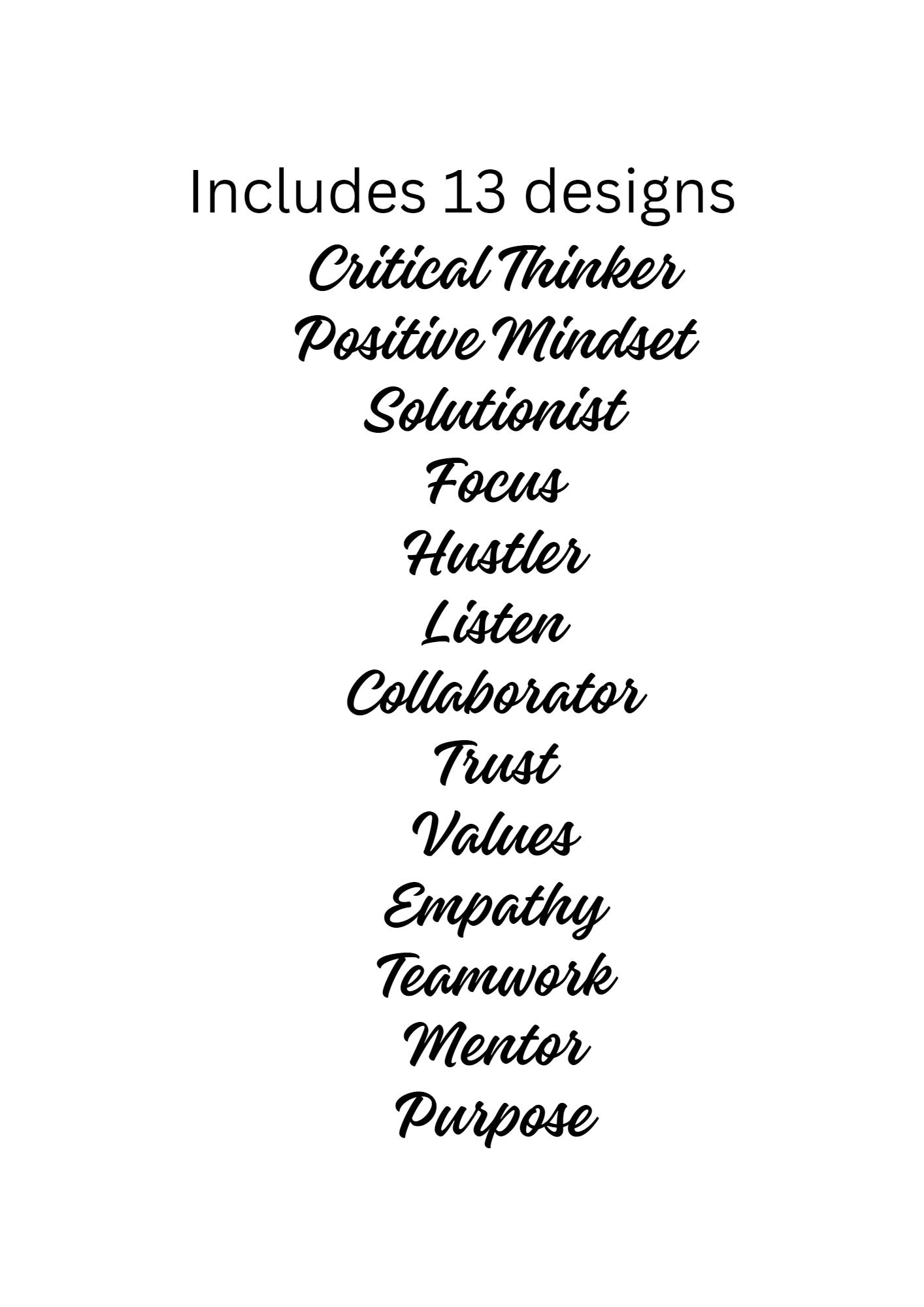 - 13 individual word definition designs (12 + 1 free) and available as 3 different dimensions: